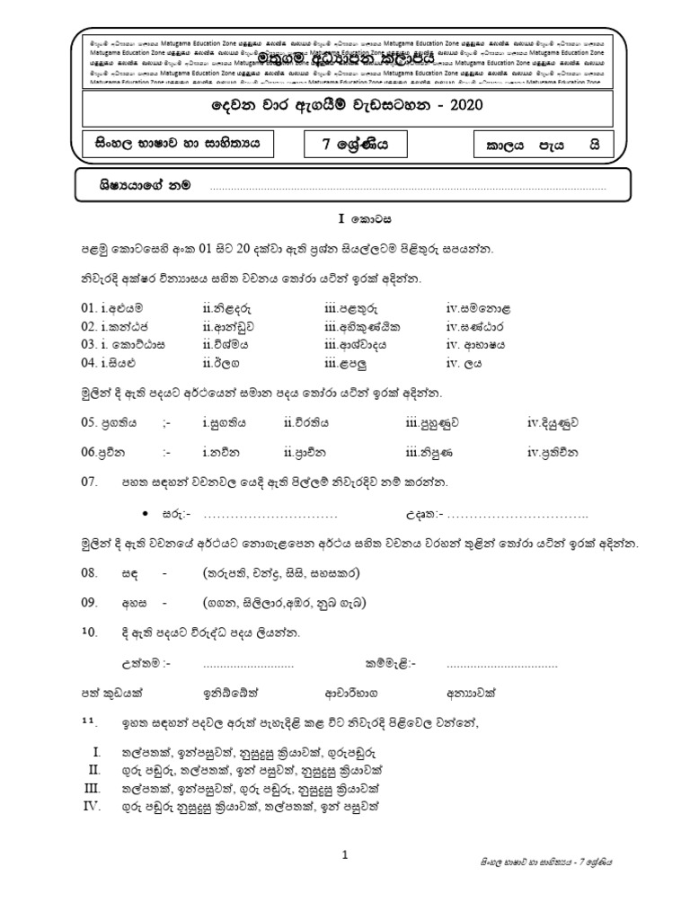 Download grade 07 sinhala language past papers, model papers, grade 07 sinhala language term test papers, school syllabus,. Access and download the grade 07 sinhala language second term test papers from 2018 to 2024 using below download link. ඇතුල් වන්න 07 ශ්රේණිය(නව විෂය නිර්දේශය) බුද්ධ ධර්මය conducted in sinhala medium කතෝලික ධර්මය conducted in sinhala medium. Practice to improve your skills and.