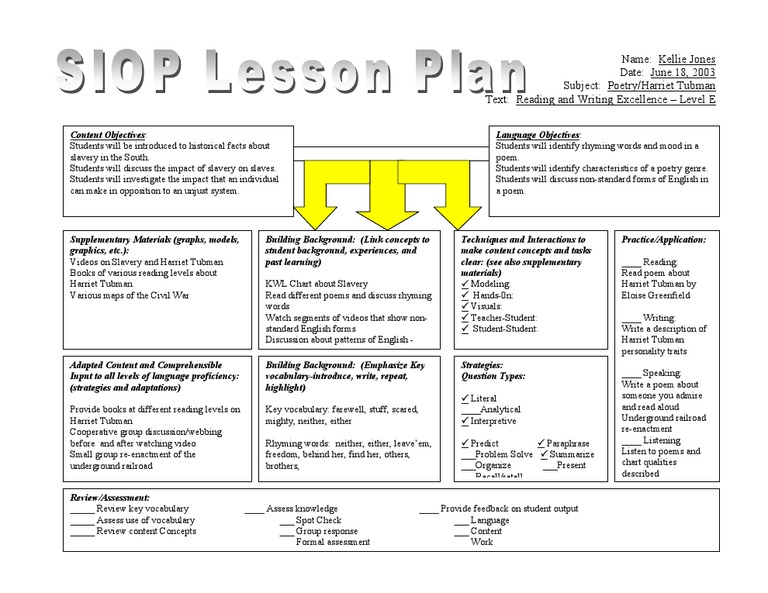 Free Editable Siop Lesson Plan Template