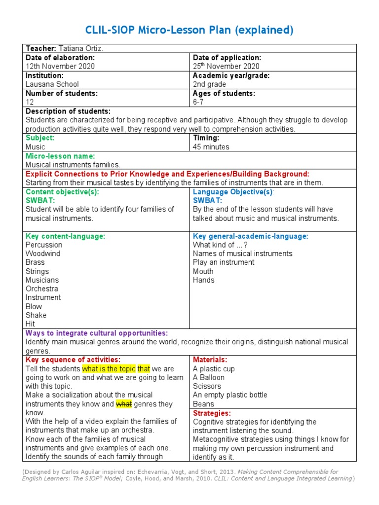 Ortiz Activity 6 CLILSIOP MicroLesson Plan PDF Metacognition