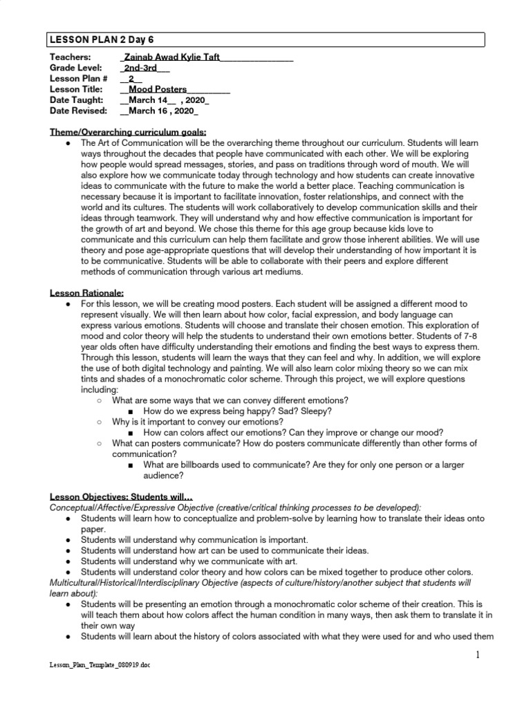 Smart Lesson Plan 2 Day 6 PDF Color Lesson Plan