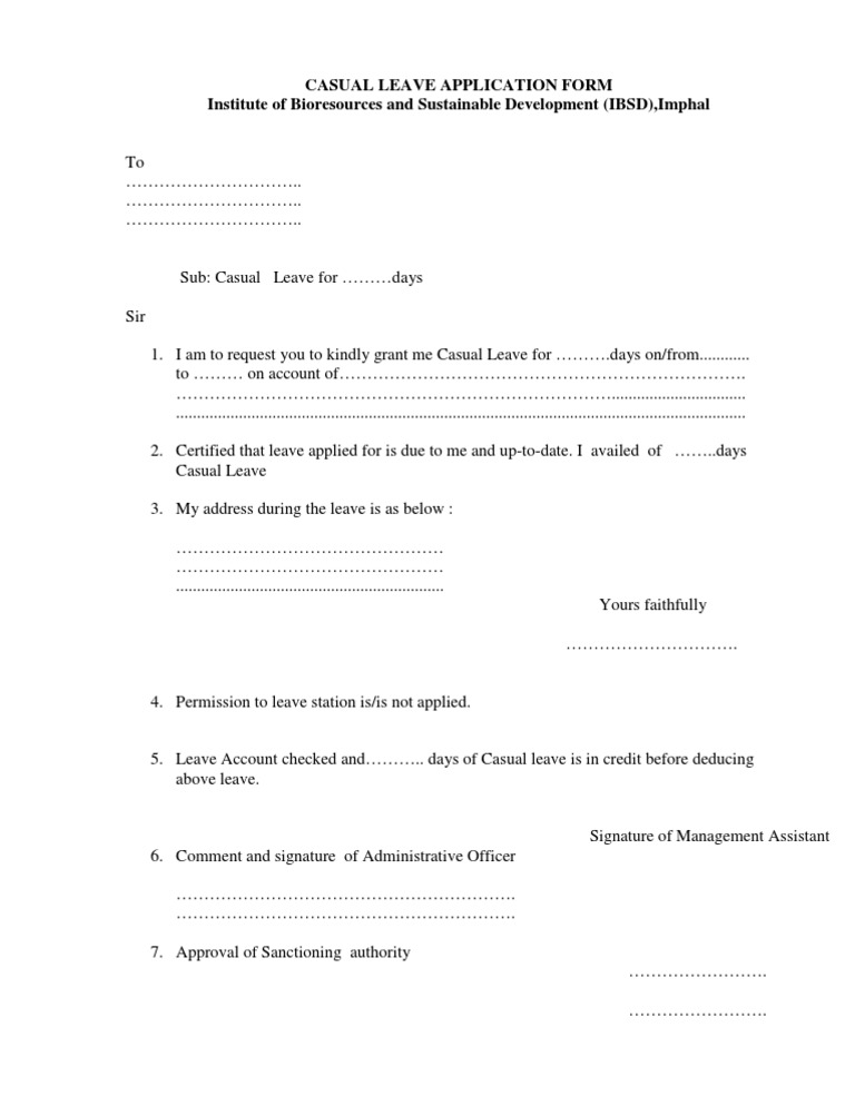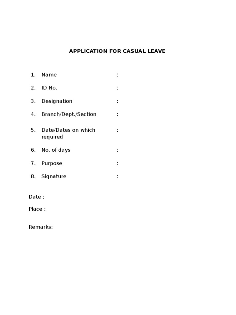 Casual Leave Application Form PDF