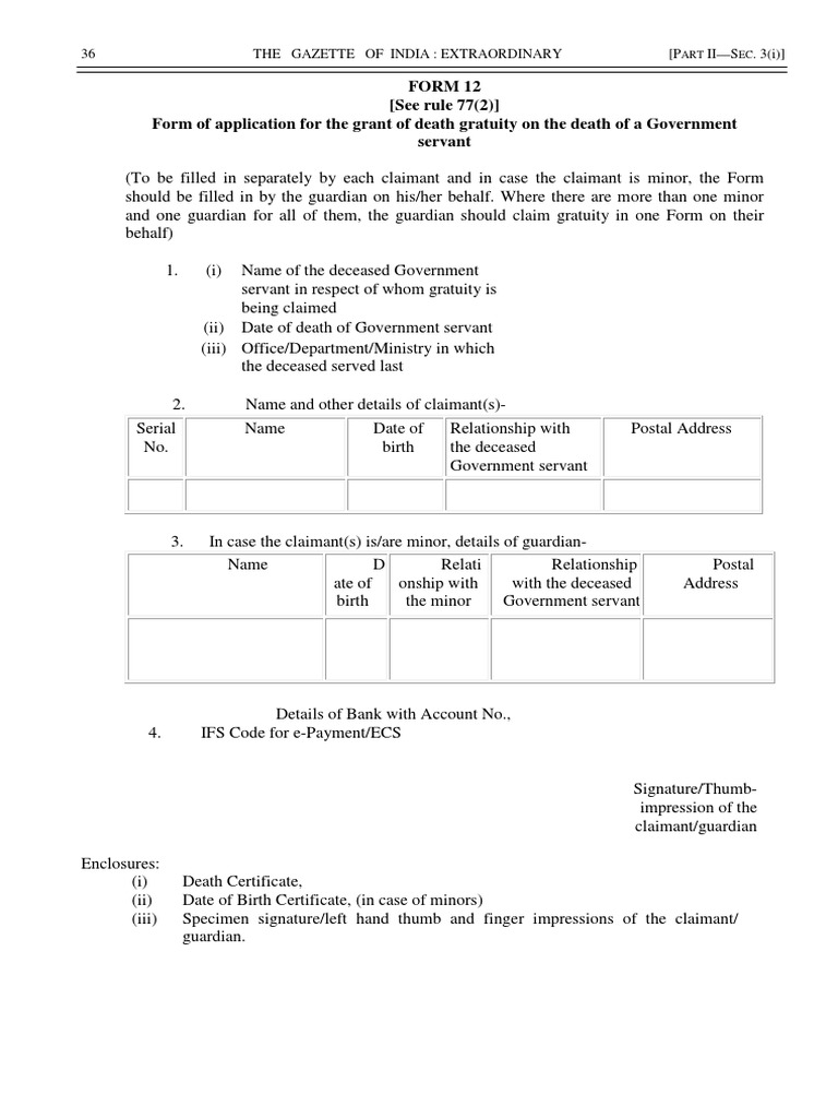 Form 12 (See Rule 77 (2) ) Form of Application For The Grant of Death