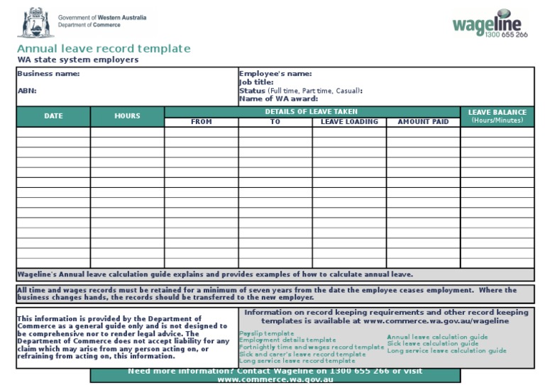 Annual Leave Record Template 1016 PDF Annual Leave Employment