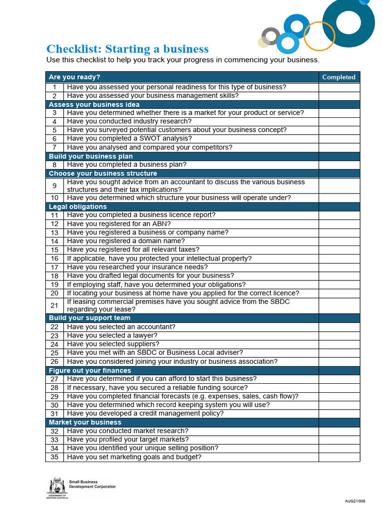 How to start a business in 15 steps use our comprehensive guide and this accompanying checklist to track your progress. This going into business checklist. Starting a new business checklist you have a great idea for a new business. As a business owner, you will need a plan to avoid pitfalls, achieve your goals, and build a profitable business. Our.