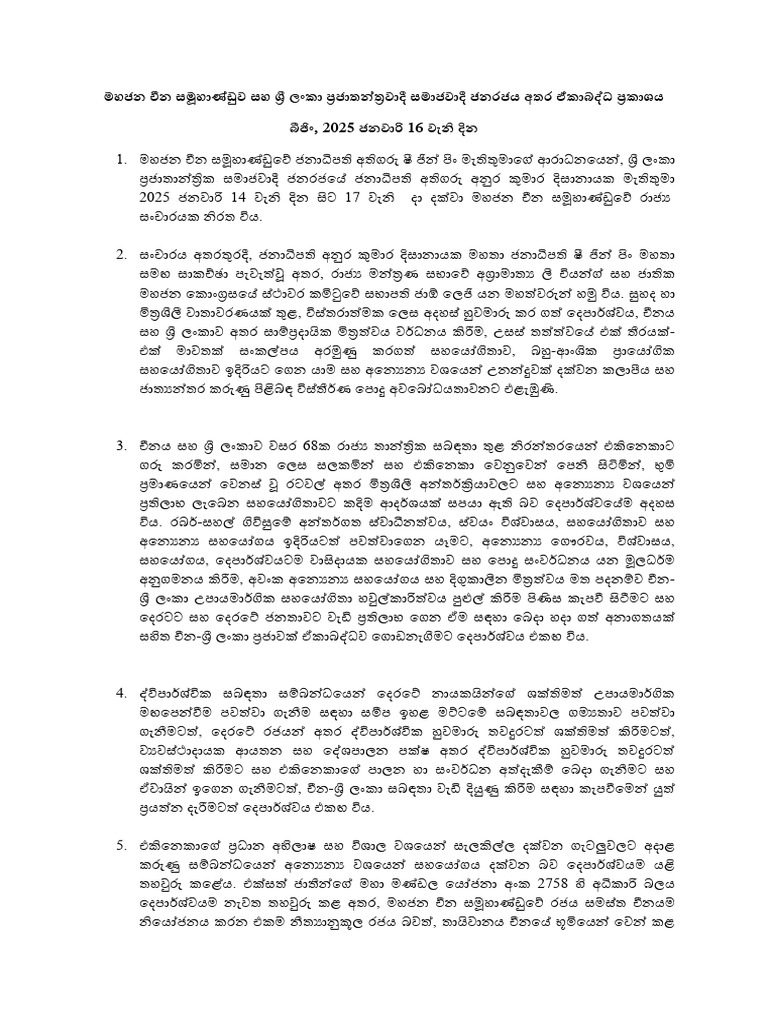 Sri LankaChina Joint Statement Sinhala PDF
