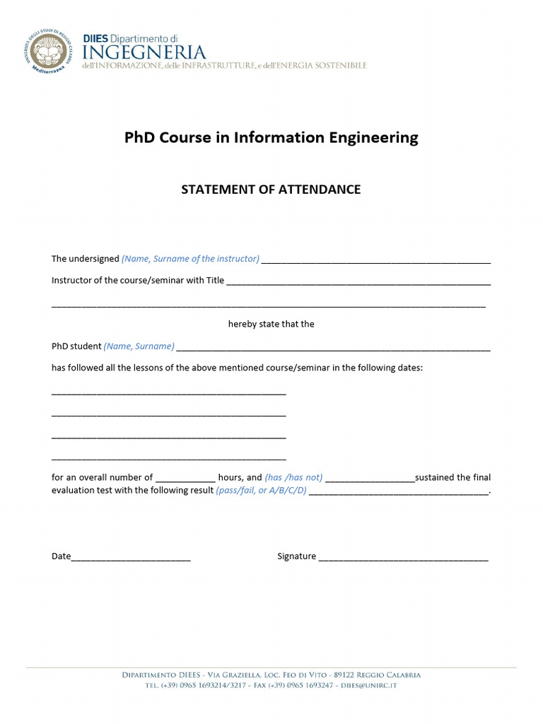 Statement of Attendance PDF