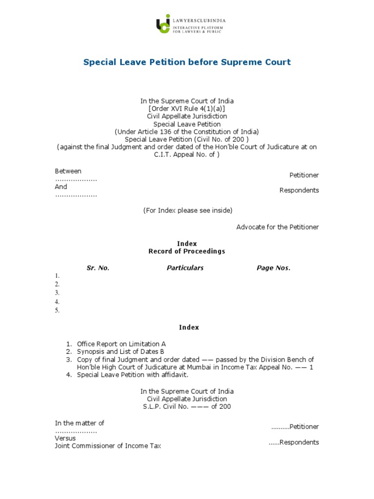 Special Leave Petition SLP PDF Supreme Courts Supreme Court Of India