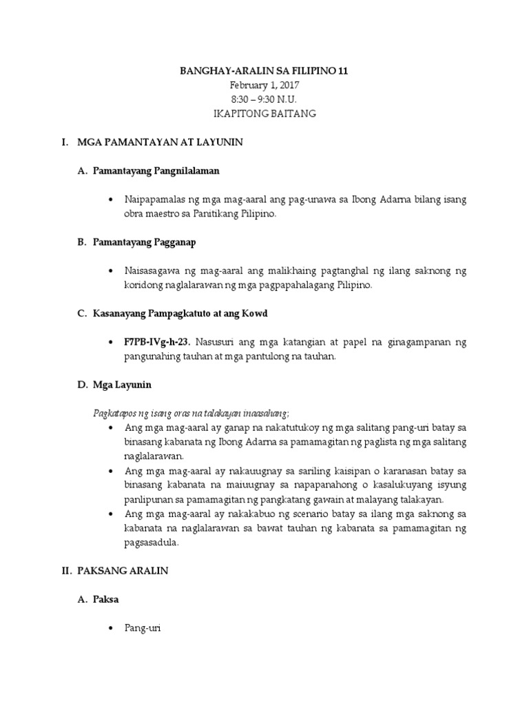 Ano Sa Tagalog Ang Semi Detailed Lesson Plan Printable Templates Free
