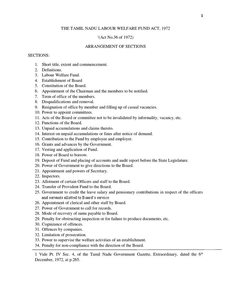 Notices showing the rates of wages, hours of work, wage period, dates of payment of wages, name and addresses of inspectors having. A knowledge base of hr compliances for tamil nadu in simple language. An act to provide for the constitution of a fund for promoting the welfare of labour and for certain other matters connected therewith in the state..