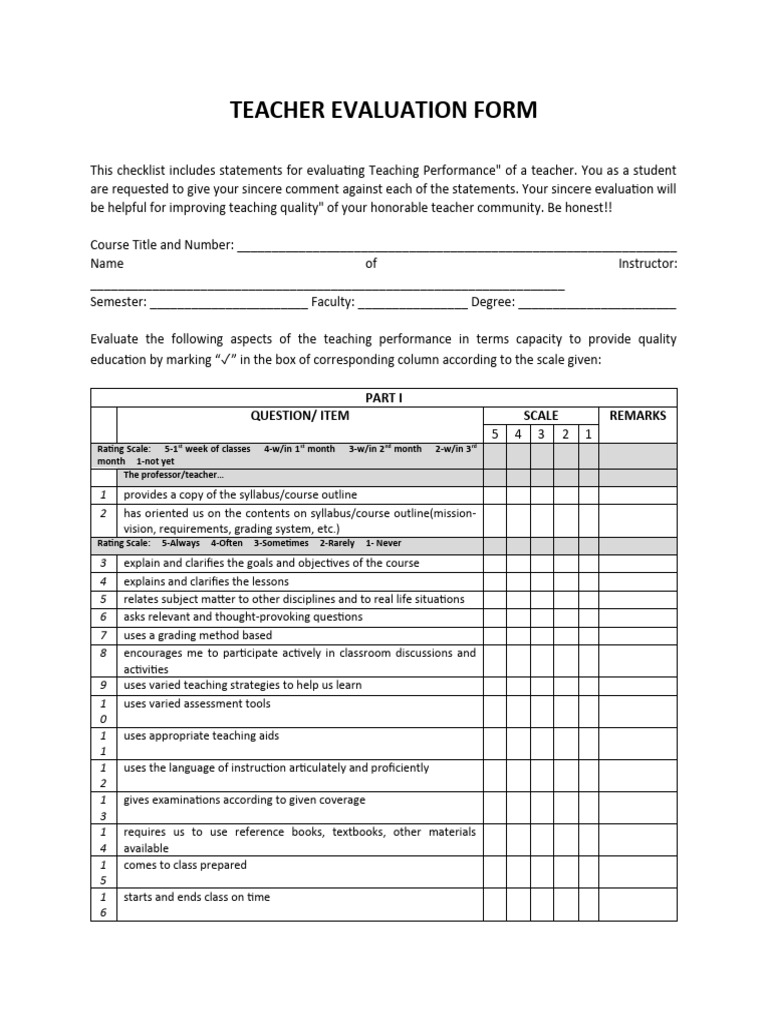 Free Printable Teacher Evaluation Form Templates [Word, Excel, PDF]