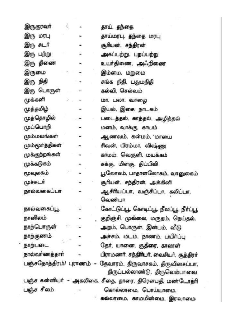 Tamil Gendral Knowledge (Words and Their Meanings) PDF