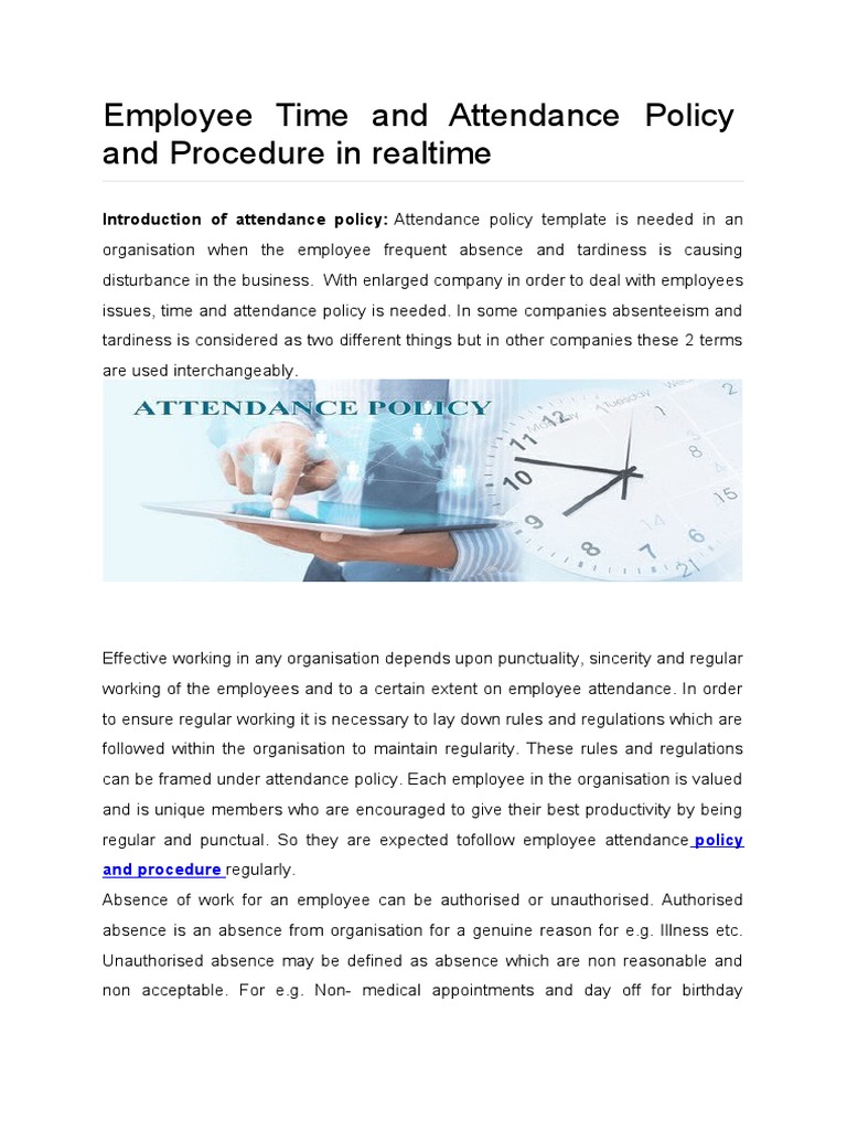 Time And Attendance Policy Template Printable Word Searches