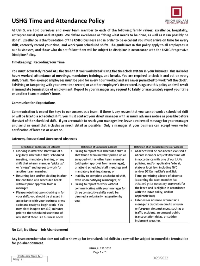 All requests for time off must be made electronically or in writing. Timely and regular attendance is expected of all our team members. Reliable attendance and timeliness is important and expected of team members. Too much missed work or being late to work could have a. This policy applies to all employees (e.g.