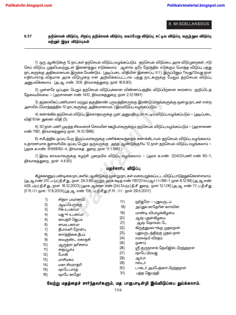 அரசு ஊழியர்கள் மற்றும் ஆசிரியர்களுக்கான அனைத்து வகை விடுப்பு விதிகளும் கீழே.