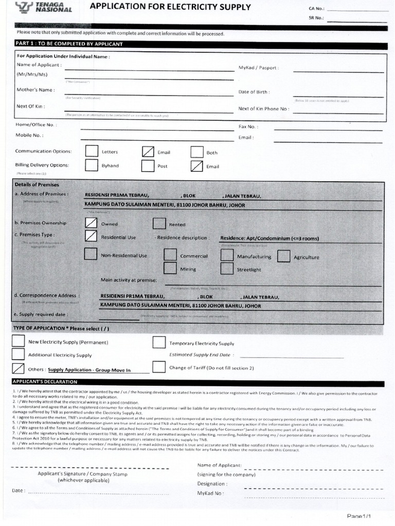TNB Form A PDF
