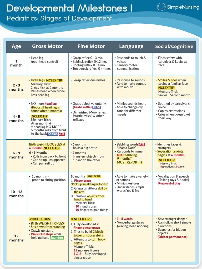 Printable Developmental Milestones Chart