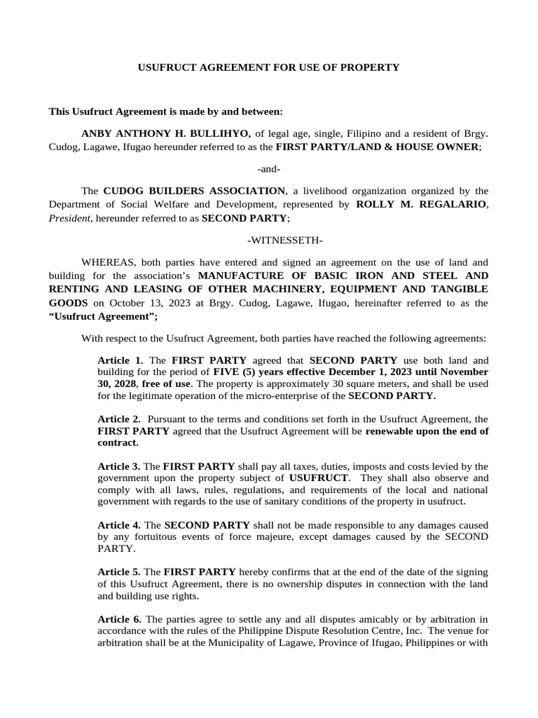 Usufruct Agreement PDF Civil Law Law) Civil Law (Legal