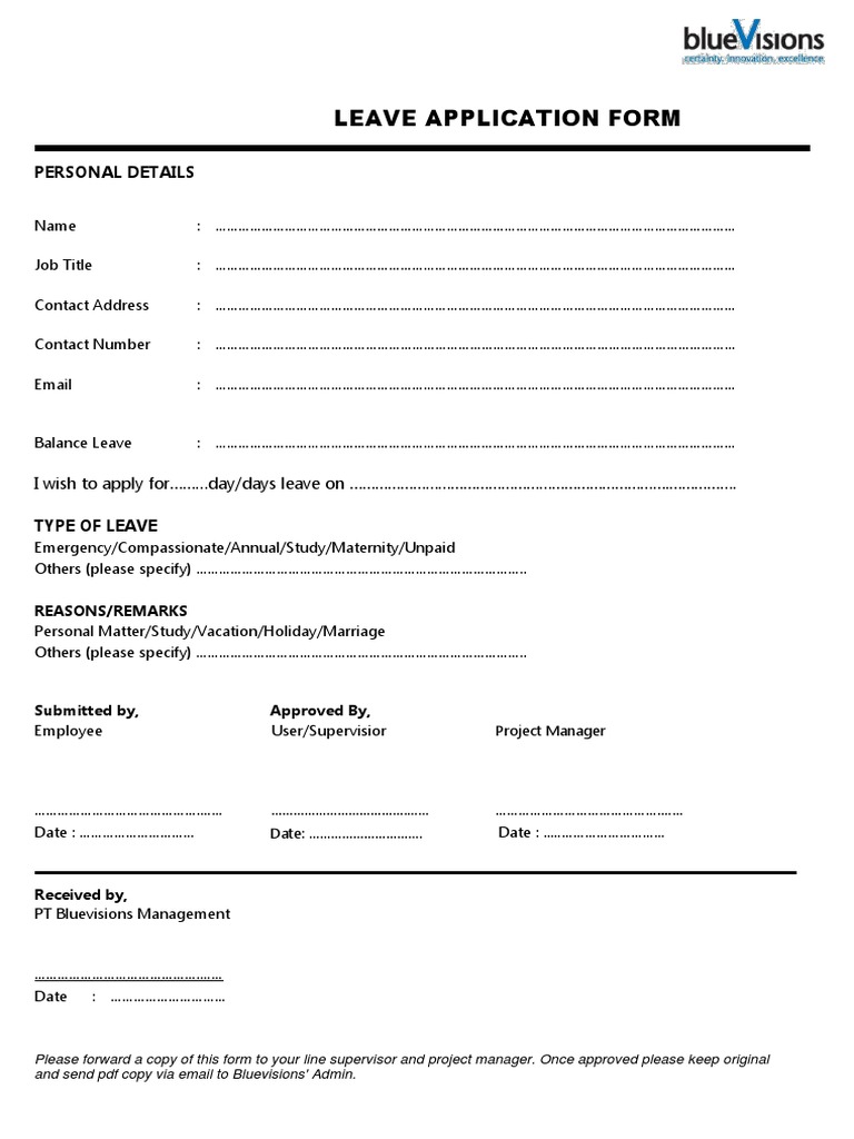 Leave Application Form PDF