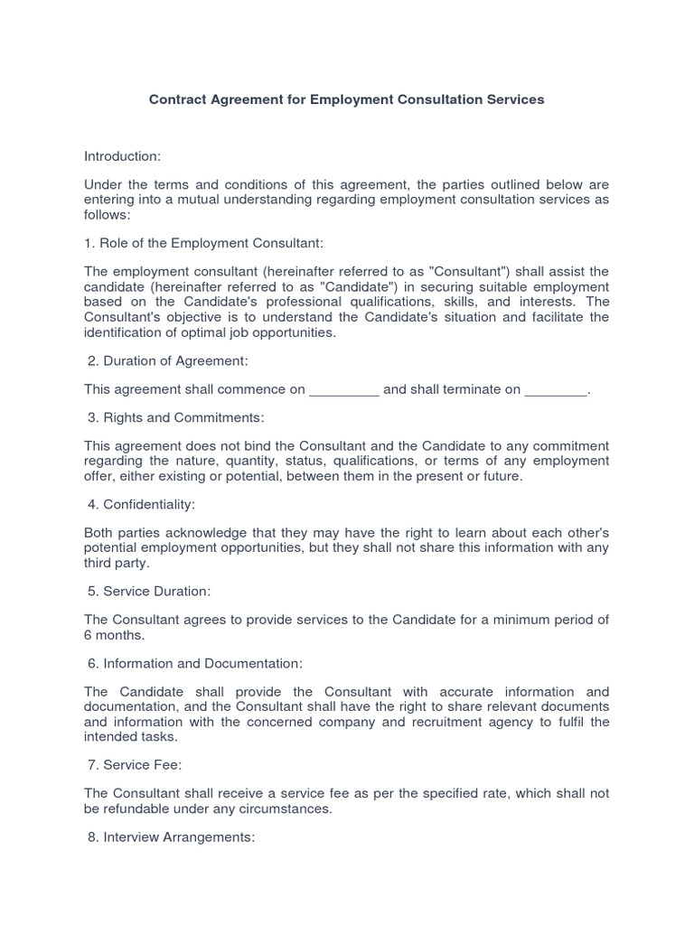 Employment contract agreement employment service contract template hr