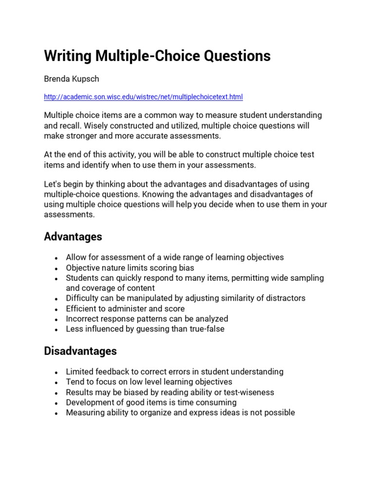 Writing Multiple Choice Questions PDF Multiple Choice Tests